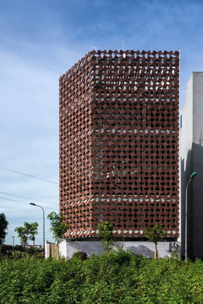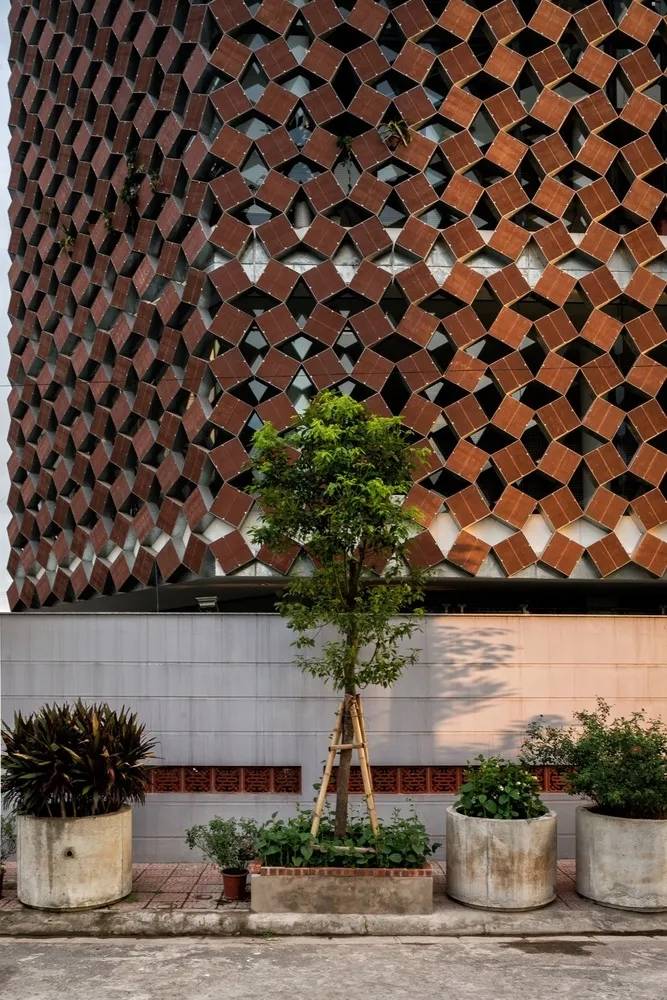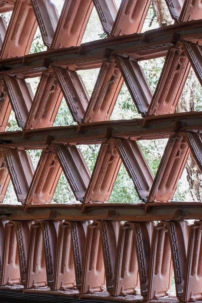 La Colmena項(xiàng)目從廢料場(chǎng)開始研究,尋找合適的目標(biāo),通過遮陽設(shè)施過濾掉主立面強(qiáng)烈的日曬。紅土陶器瓷磚是一個(gè)很容易被忽略的郊區(qū)標(biāo)志,因?yàn)樗苋菀踪徺I,因此沒有足夠的回收市場(chǎng)。除了通用性之外,赤土陶器瓷磚充分展示了原始材料的特性,沒有一種瓷磚與其完全相似,采用粘土鑄造,手工燒制。