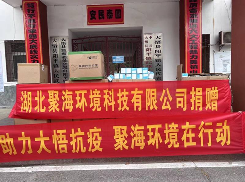4月2日,湖北聚海環(huán)境科技有限公司向陽平鎮(zhèn)應對新冠肺炎疫情防控工作指揮部捐贈一批醫(yī)療物資。