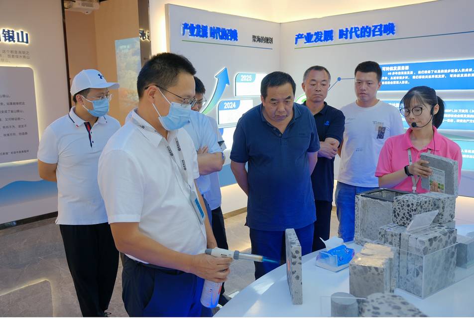 聚海環(huán)境董事長劉志浩對中南市政總院副總工楊濤及各參編單位一行的到訪表示熱烈歡迎,并陪同參觀了企業(yè)文化展廳及專利成果展示墻,研發(fā)中心負責人胡波現(xiàn)場展示了改性磷石膏高性能自保溫砌塊的輕質高強、隔音隔熱、防水防火、保溫保濕的產品性能,隨后雙方進行了座談交流。