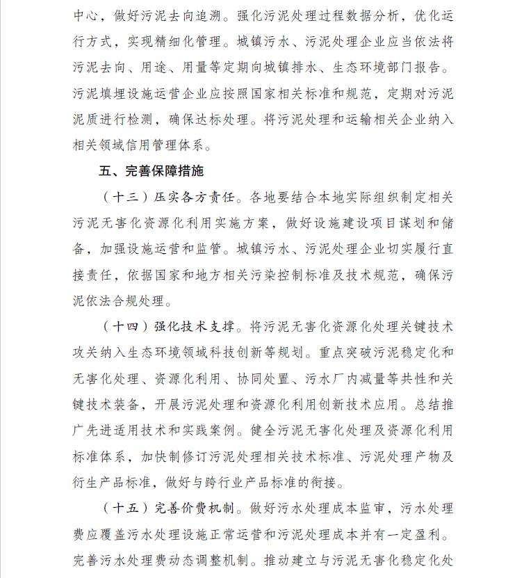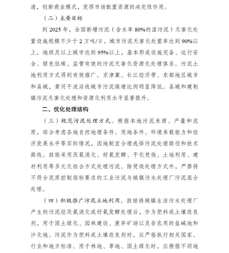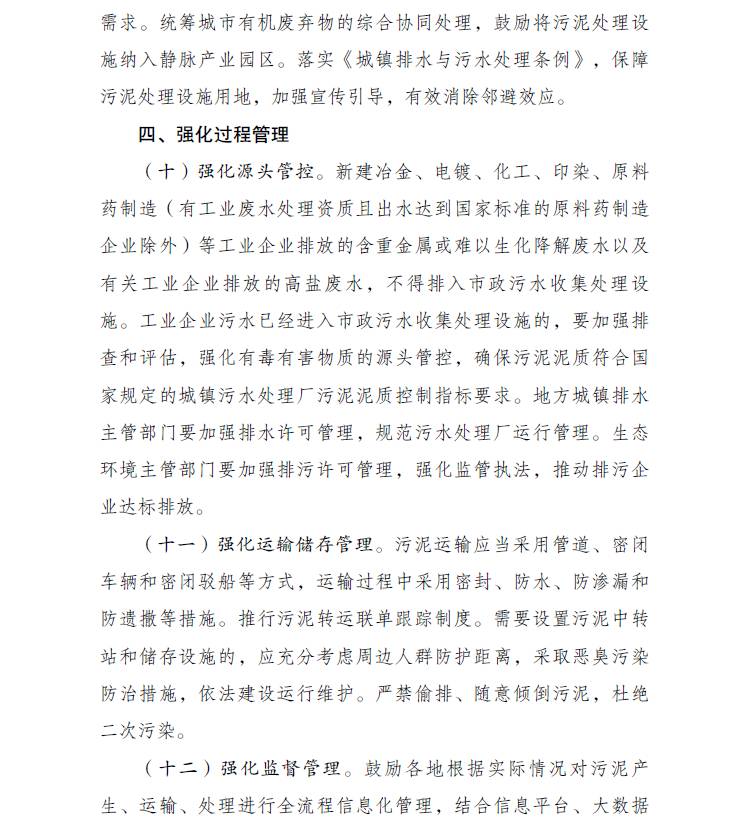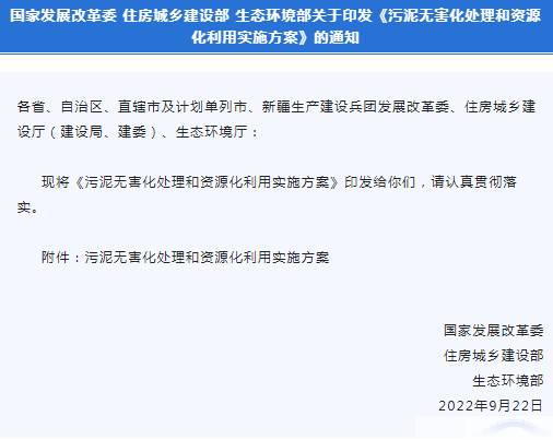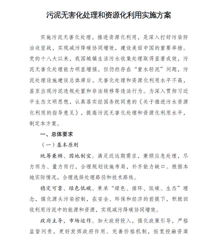 三部門關(guān)于印發(fā)《污泥無害化處理和資源化利用實施方案》的通知