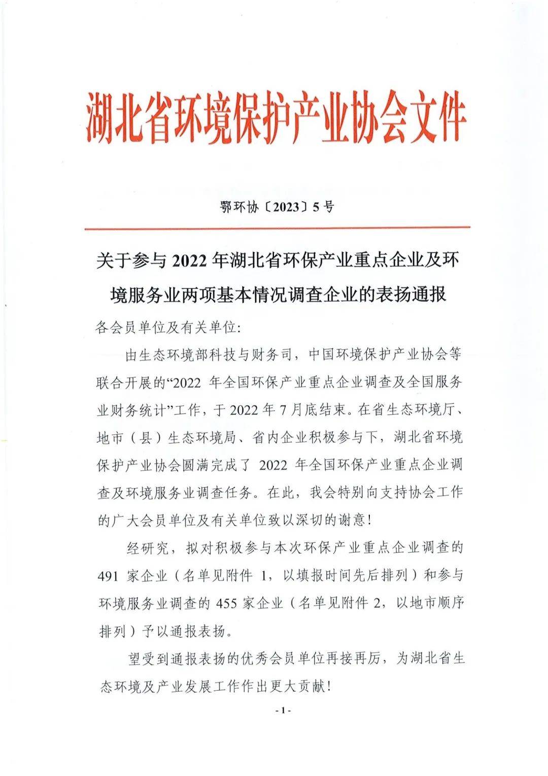 由生態(tài)環(huán)境部科技與財(cái)務(wù)司,中國(guó)環(huán)境保護(hù)產(chǎn)業(yè)協(xié)會(huì)等聯(lián)合開(kāi)展的“2022年全國(guó)環(huán)保產(chǎn)業(yè)重點(diǎn)企業(yè)調(diào)查及全國(guó)服務(wù)業(yè)財(cái)務(wù)統(tǒng)計(jì)”工作,于2022年7月底結(jié)束。在省生態(tài)環(huán)境廳、地市(縣)生態(tài)環(huán)境局、省內(nèi)企業(yè)積極參與下,湖北省環(huán)境保護(hù)產(chǎn)業(yè)協(xié)會(huì)圓滿(mǎn)完成了2022 年全國(guó)環(huán)保產(chǎn)業(yè)重點(diǎn)企業(yè)調(diào)查及環(huán)境服務(wù)業(yè)調(diào)查任務(wù)。在此,我會(huì)特別向支持協(xié)會(huì)工作的廣大會(huì)員單位及有關(guān)單位致以深切的謝意!