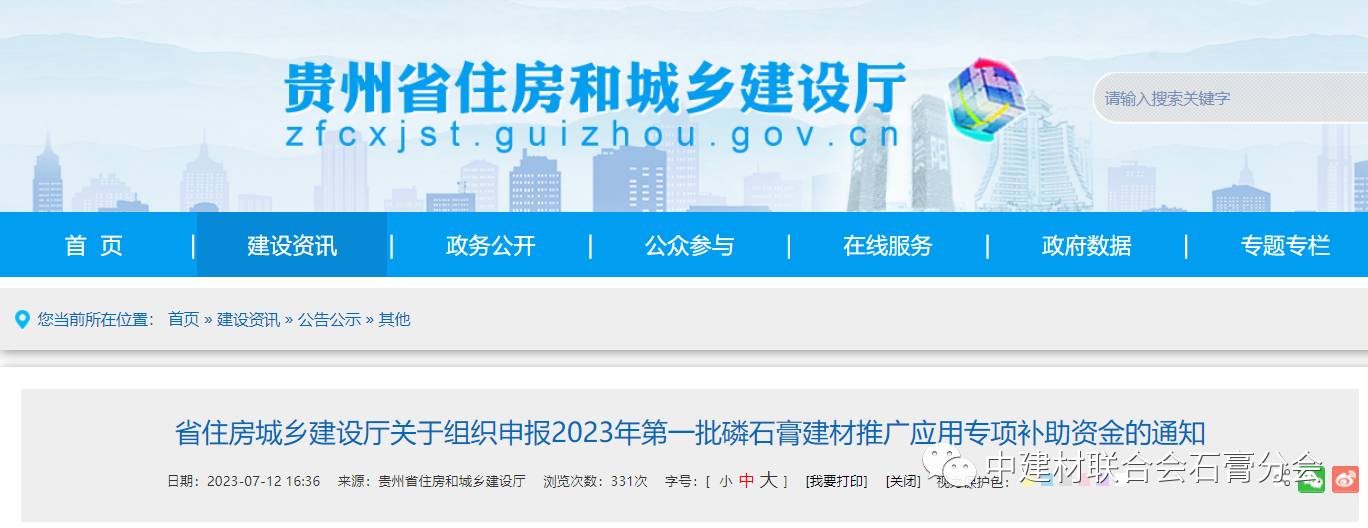 近日,貴州省住房城鄉(xiāng)建設(shè)廳發(fā)布《關(guān)于組織申報(bào)2023年第一批磷石膏建材推廣應(yīng)用專項(xiàng)補(bǔ)助資金的通知》(以下簡(jiǎn)稱《通知》),決定啟動(dòng)2023年磷石膏建材推廣應(yīng)用專項(xiàng)補(bǔ)助資金申報(bào)工作。