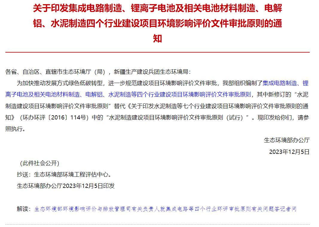 水泥制造建設項目環(huán)境影響評價文件審批原則