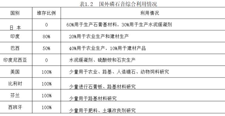 在對(duì)磷石膏的處置問題上,國(guó)外普遍采用堆存或直接排放入海,全球磷石膏綜合利用率僅為25%左右。日本與印度尼西亞形成了完善的循環(huán)體系,其中日本石膏資源匱乏,生產(chǎn)的磷石膏基本全部用于石膏建材與水泥緩凝劑;而美國(guó)等發(fā)達(dá)國(guó)家基本采用堆存方法,原因是美國(guó)對(duì)磷石膏應(yīng)用的風(fēng)險(xiǎn)估計(jì)過高,出于環(huán)保、經(jīng)濟(jì)方面顧慮,只允許利用非常少量的磷石膏。而處于環(huán)地中海北非磷礦帶、磷礦儲(chǔ)量世界第一的國(guó)家一一摩洛哥,選擇直接將磷石膏排放入海。