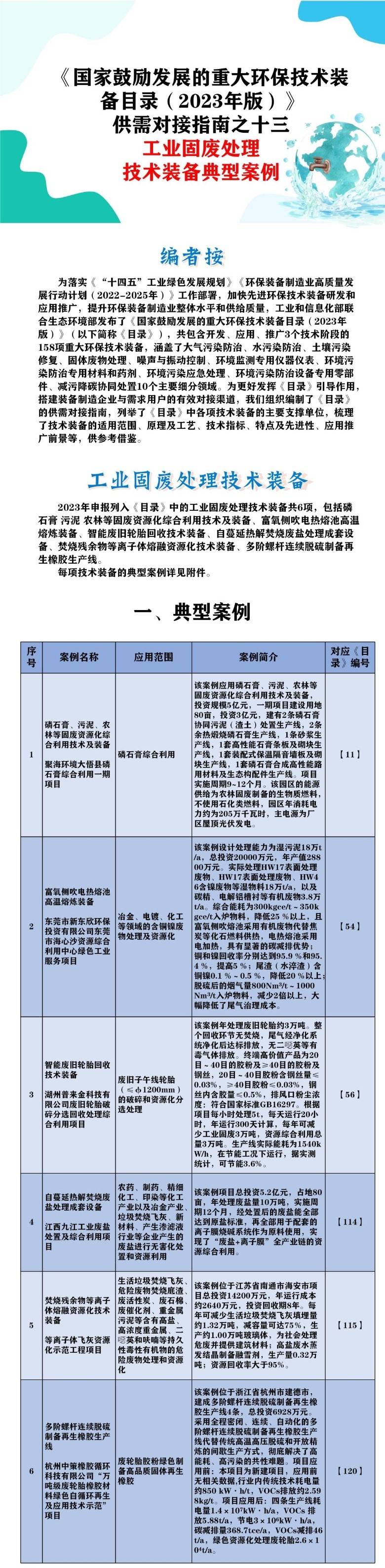 附件:《國家鼓勵發(fā)展的重大環(huán)保技術(shù)裝備目錄(2023年版)》供需對接指南之十三 工業(yè)固廢處理技術(shù)裝備典型案例https://wap.miit.gov.cn/zwgk/wjgs/art/2023/art_74848ea5b1f74cf5b3134b25abc081da.html